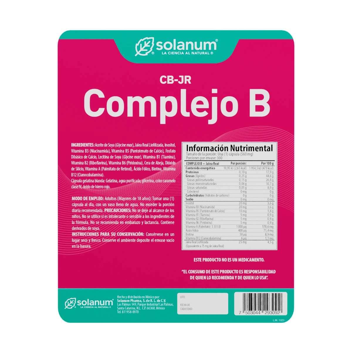 Cápsulas de Complejo B (Vitaminas B1, B2, B3, B5, B6) con Jalea Real.