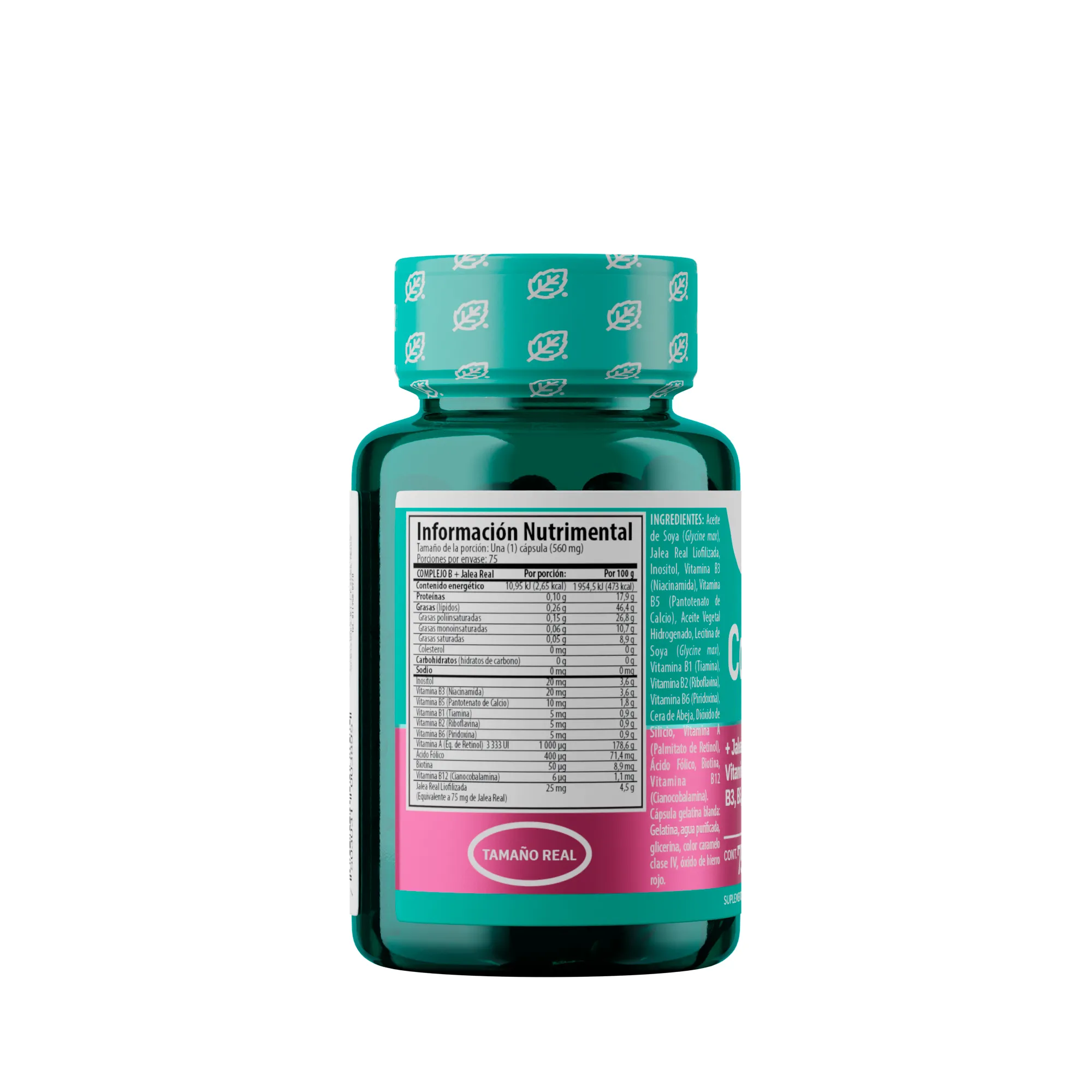 Cápsulas de Complejo B (Vitaminas B1, B2, B3, B5, B6) con Jalea Real.