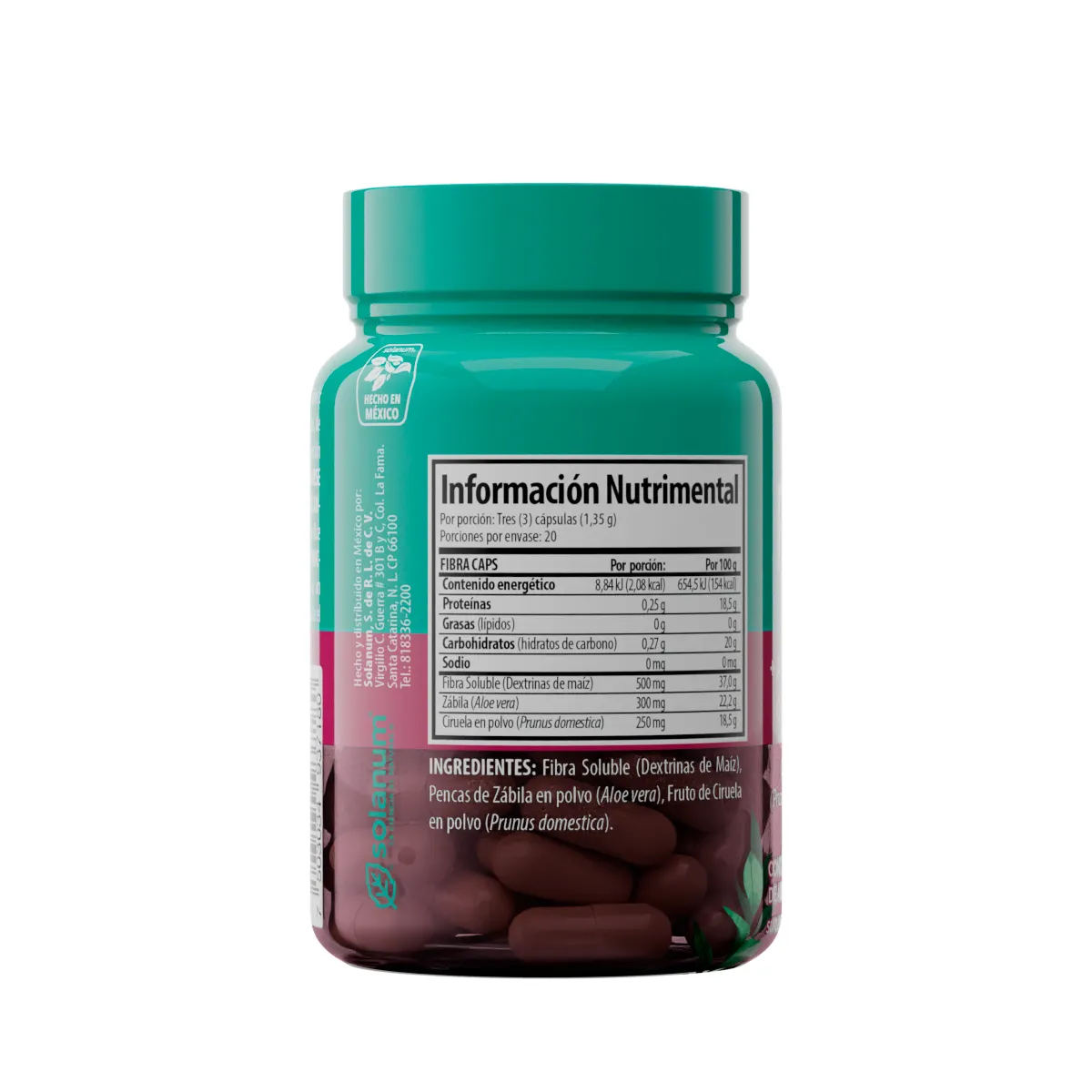 Cápsulas Vegetal de Fibra Soluble con Aloe Vera y Ciruela.