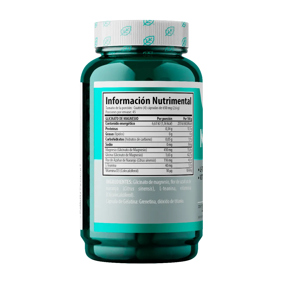 Cápsulas de Glicinato de Magnesio más L-teanina Vitamina D3.