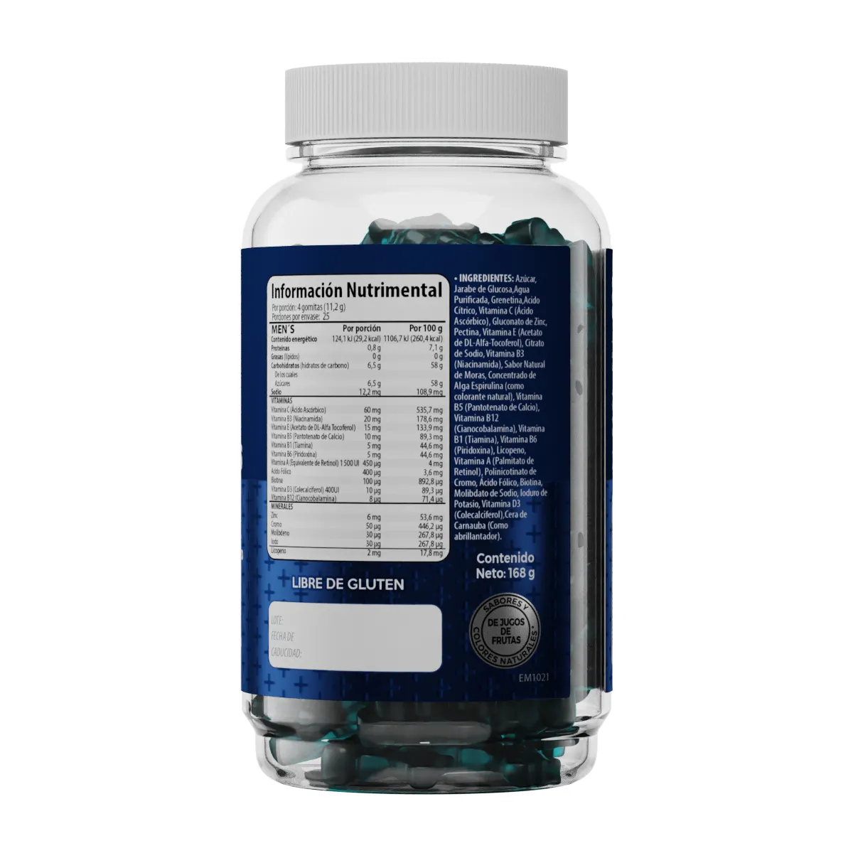 Gomitas para Adultos de: Vitaminas y Minerales para Hombre con Vitaminas C, D, E, Complejo B, Zinc, Licopeno. Sabor Moras.