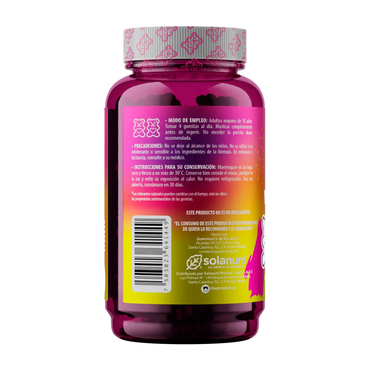 Adultos (Mayores de 18 años): Tomar 4 gomitas al día. Masticar completamente antes de ingerir. No exceder la porción diaria recomendada.