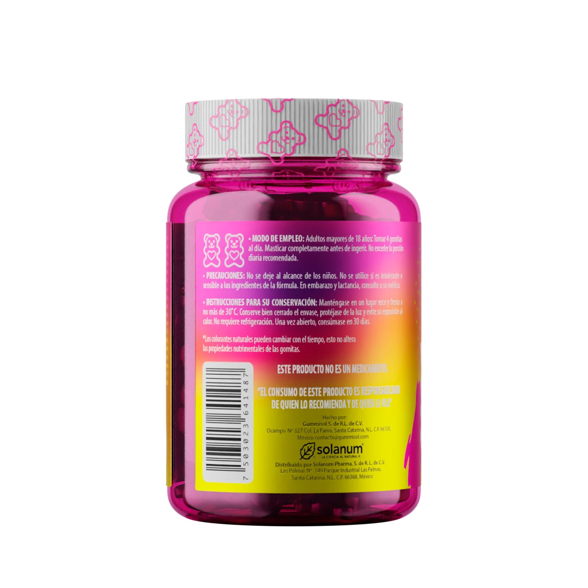 Adultos (Mayores de 18 años): Tomar 4 gomitas al día. Masticar completamente antes de ingerir. No exceder la porción diaria recomendada.
