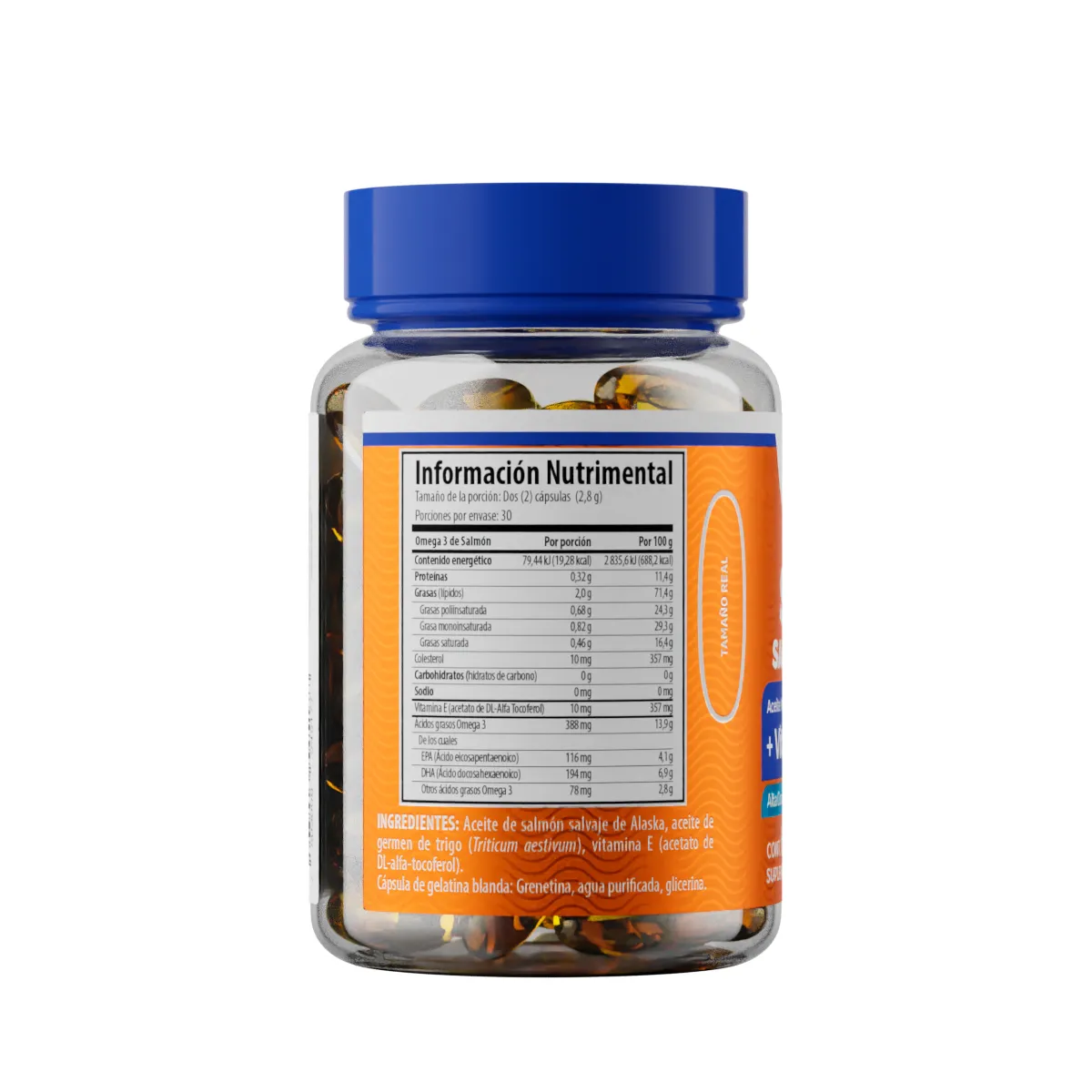 Cápsulas de Omega 3 de Salmón Salvaje de Alaska con Aceite Natural de Trigo Virgen y Vitamina E. Alta Concentración de EPA/DHA.