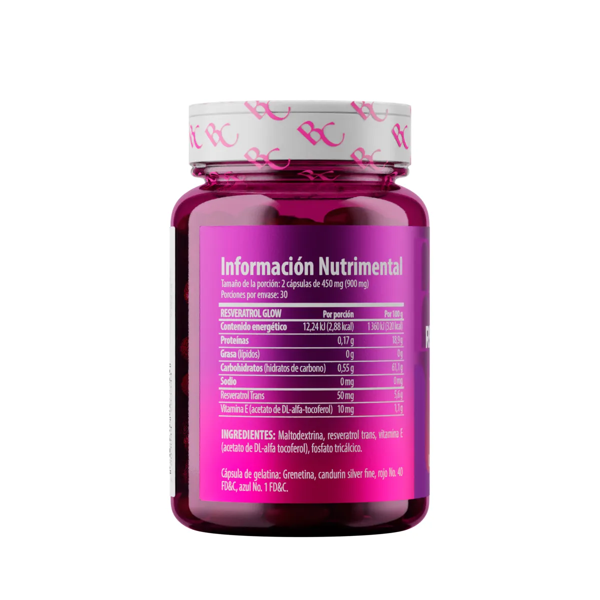 Maltodextrina, resveratrol trans, vitamina E (acetato de DL-alfa tocoferol), fosfato tricálcico. Cápsula de gelatina: Grenetina, candurin silver fine, rojo No. 40 FD&C, azul No. 1 FD&C.