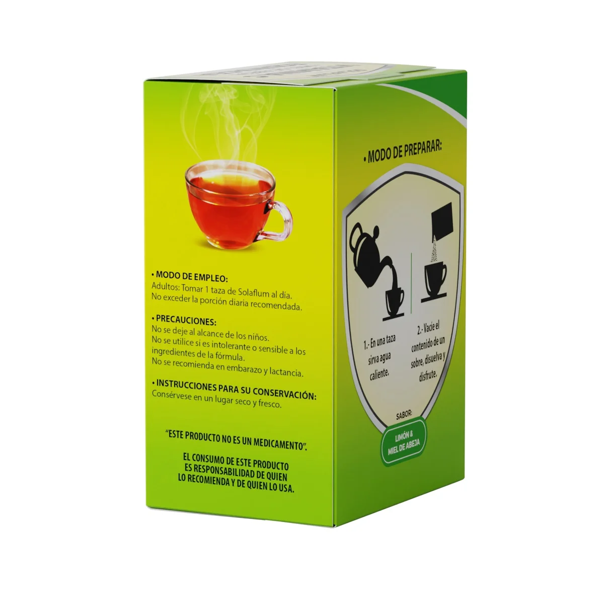Solaflum es un polvo para preparar una bebida caliente que te ayudará a prevenir y restaurar la salud frente a las enfermedades respiratorias, como el resfriado común y algunas infecciones de garganta y oídos, ya que estimula la buena salud del sistema inmunológico, levanta las defensas del cuerpo para combatir los agentes infecciosos, y ayuda a disminuir los malestares propios de estas enfermedades, tales como el dolor y la inflamación de garganta, así como la tos.