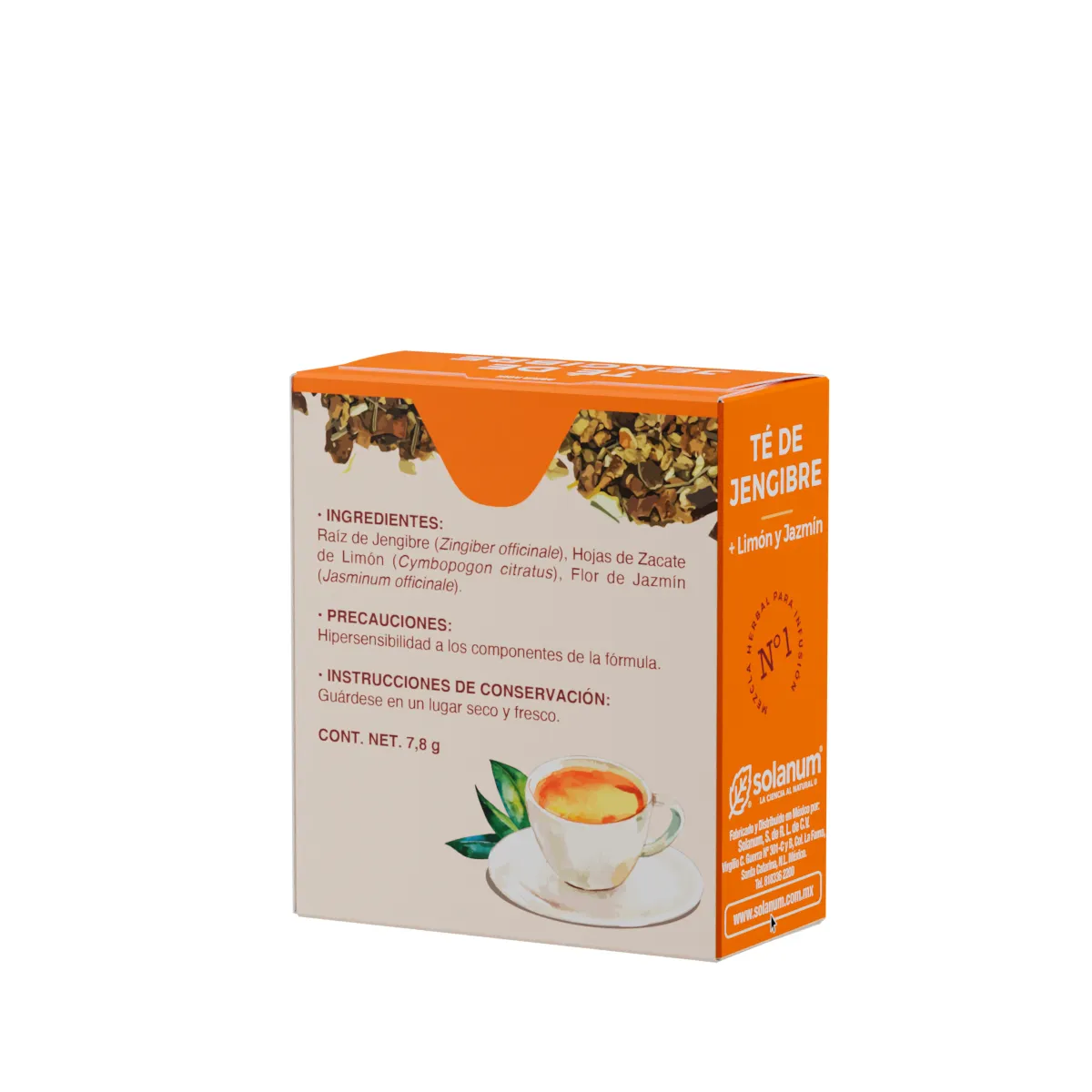 Caja con Bolsas de Té de Jengibre + Limón y Jazmín (Sin Cafeína). Mezcla herbal para infusiones.