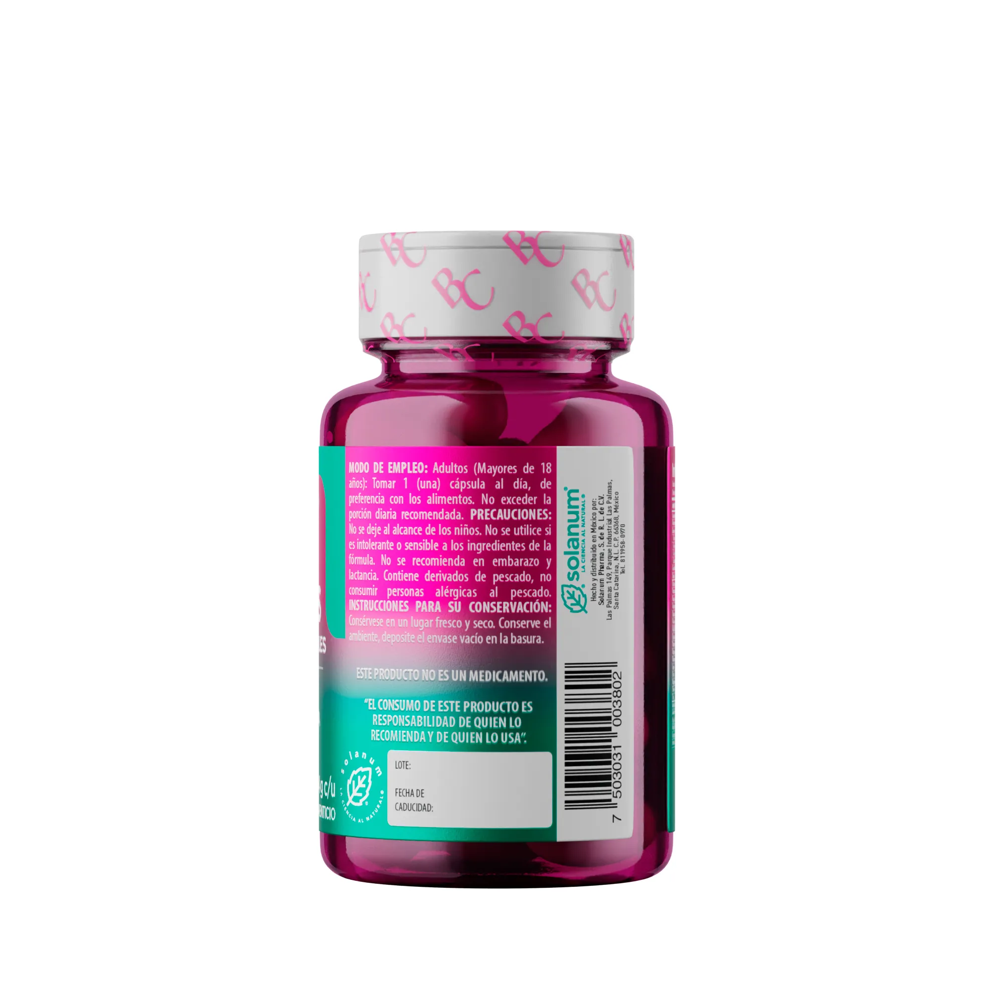 No se deje al alcance de los niños. No se utilice si es intolerante o sensible a los ingredientes de la fórmula. No se recomienda en embarazo y lactancia. Contiene derivados de pescado, no consumir personas alérgicas al pescado.