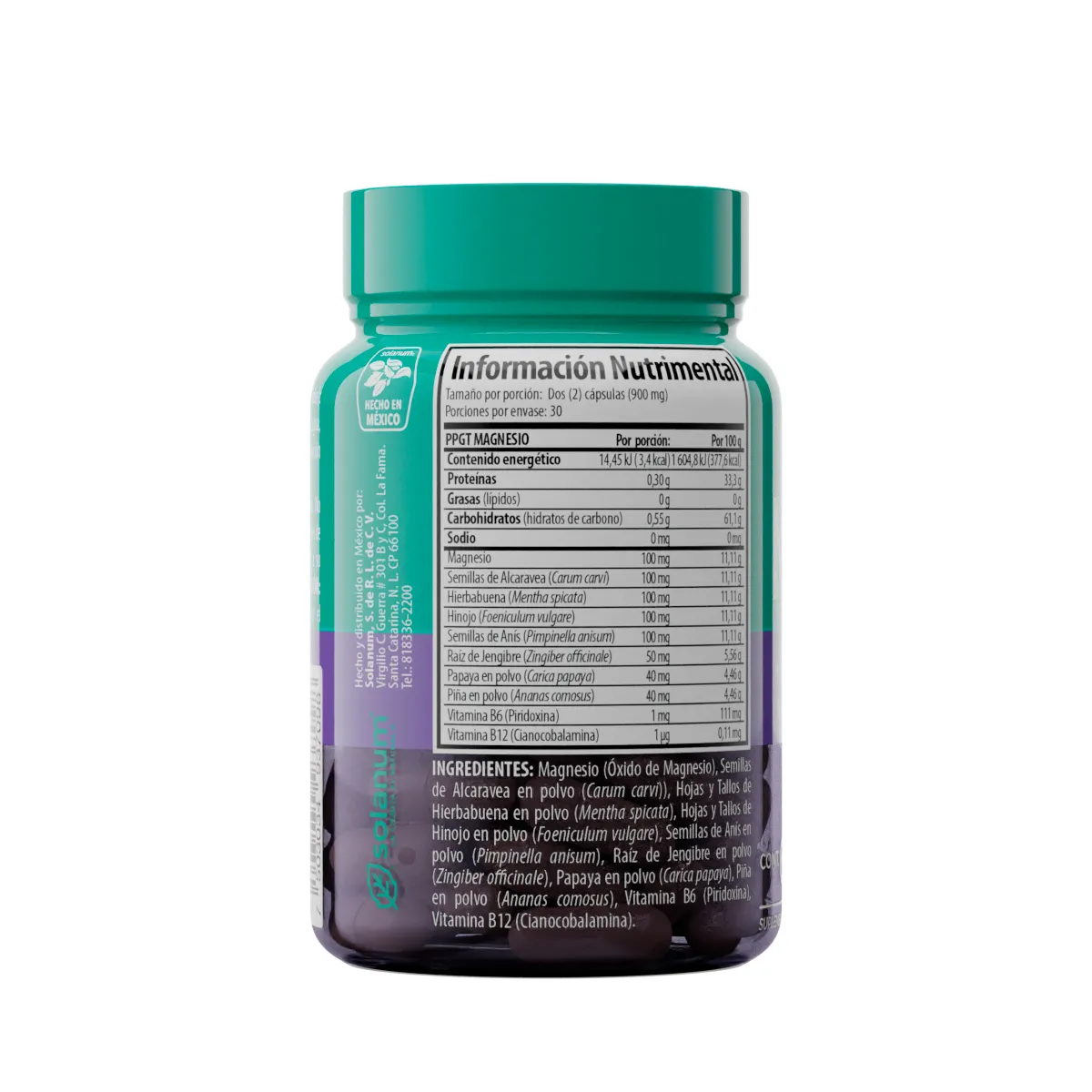 Cápsulas Vegetal de Magnesio con Semilla de Alcaravea, Hierbabuena, Papaya.